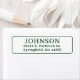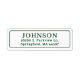 Classic Chic dark green on white return address labels featuring a traditional serif font for an elegant minimal feel.