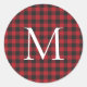 Classic Christmas Buffalo Plaid Custom Monogram Round Sticker
