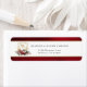 Timeless and elegant yet festive holiday-themed wedding address label design featuring classic hand-drawn gold floral crest accented by a colourful spray of red and white Christmas flowers and evergreens. This custom formal template includes editable text fields for your custom monogram as well as a faux ruby red velvet background.