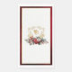 Timeless and elegant yet festive holiday-themed wedding design featuring classic hand-drawn gold floral crest accented by a colourful spray of red and white Christmas flowers and evergreens. This custom formal template includes editable text fields as well as a custom label with gold textured border. The outside border features an opulent, ruby red velvet texture background.