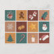 Our Classic Christmas Ornament Decorations Hoilday Postcard, is the perfect way to add a touch of elegance to your holiday greetings. Crafted with care, this postcard includes a Gingerbread man, a candy cane, a bell, Santa's Hat, a snowman, a gold star, Mistletoe, a cup of hot coco, mittens, a candle, a Christmas tree and a single Snowflake. This postcard is the ideal choice for the holiday season.