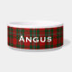 Handsome, ceramic dog food or water dish done in the red, green, and white Scottish clan MacGregor tartan plaid pattern. White text is ready to personalize for your pet.