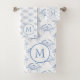 Classic Coastal Blue and White Crabs Monogram Bath Towel Set