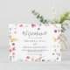 This classic colourful wild elopement announcement has a beautiful modern design. The design features a yellow, purple, white wild flowers with foliage in a rose and green watercolor background.