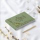 This guest book offers a perfect place for friends and family to record their signatures and heartfelt messages. Crafted from premium materials, it features the words 'Guest Book' in graceful gold foil calligraphy, complemented by an ornate antique filigree floral design set against a chic medium to dark sage green backdrop. Customize it with your wedding date on the cover and your initials on the spine to make it uniquely yours. This treasured memento will act as a lovely testament to your special day for many years.
