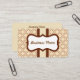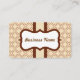 A classic cream and brown pattern decorates this business card. Customize this business card to suit your needs. Add or delete information, change the font style, font size, etc...The design is from original art. Use this stylish business card for a spa, salon, small business, home decor, coffee shop, gourmet chocolates, ice cream shop, nail salon, inn, cosmetologist, preschool, hair stylist, event planner, child care, daycare, bed and breakfast, boutique, bakery, etc...
