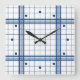 Classic Dark Blue Farmhouse Plaid Pattern On White Square Wall Clock