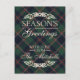 This elegant and contemporary holiday card features a plaid pattern adorned with the classic "Season's Greetings" message. It showcases shades of green, dark blue, and red, creating a classy and nostalgic English holiday ambiance. You can personalize it by adding your family name on the front and text on the back. This card is perfect for sending Christmas messages and wishes in a traditional colonial style, making it an excellent choice for a charming, sophisticated theme.