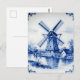 Classic Delft Blue Windmill Canal Scene Postcard