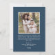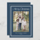 Share heartfelt holiday greetings with this photo holiday card featuring a rich navy background and a traditional double white border frame. “Merry Christmas” is displayed in coordinating white lettering above your family photo, with your family name and year printed below. The classic navy and white design offers an elegant and timeless look, perfect for sending warm Christmas wishes to friends and family. The back includes a square photo with space for your personalized message, completing this sophisticated holiday card.