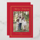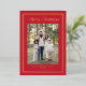 Send festive greetings with this photo holiday card featuring a red background and elegant gold foil double border frame. “Merry Christmas” is displayed in coordinating gold foil lettering above your family photo, with your family name and year printed below. The luxurious red and gold design creates a timeless and festive look, perfect for the holiday season. The back includes a square photo with space for your personalized message, completing this elegant holiday card.