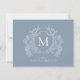 Classic Dusty Blue Floral Crest Monogram Note Card