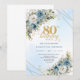 Classic Dusty Blue Floral Gold 80th Birthday Invit Invitation