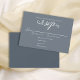 Dusty Blue carte rsvp avec réponse rsvp réponse bleu poussiéreux, un minimaliste simple minimaliste, un choix de repas traditionnel, un script de calligraphie tendance, un élégant style de typographie de mariage, un choix de repas de réponse d'invité, une réponse d'invité traditionnel rsvp, avec une réponse gentille sur ou avant, un élégant design bleu foncé, une carte de réponse sophistiquée classe