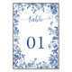 Classic Dusty Blue Toile Floral Wedding Table Number