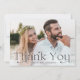 Elegant wedding thank you cards featuring your full-bleed horizontal wedding photo with "Thank You" in black lettering. Personalize the modern photo thank you card with your name. The back of the photo wedding thank you card displays your custom message in white lettering with a solid black background.