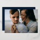Announce your wedding in style with these elegant foil save the date cards. The design features your full-bleed horizontal photo with "Save the Date" in gold foil lettering. Personalize the modern photo save the date card with your names, wedding date, wedding location, and invitation details. The back of the card features additional details such as your wedding website in white lettering on a solid navy background.