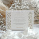 This Classic Elegance Thank You Card captures the essence of refined gratitude with its printed emboss effect. It features a sophisticated faux embossed foliage pattern, drawing inspiration from traditional Islamic art, presented in a harmonious blend of taupe, cream, and white hues. This card is perfect for those who appreciate the beauty of intricate designs and the illusion of texture. Printed on high-quality paper, it lends a touch of class to your messages of thanks, making it an exceptional choice for following up after weddings or any cherished events.