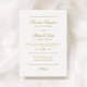 Formal antique gold wedding invitation design features beautiful typography that combines a traditional flourished calligraphy script with classic block lettering on a clean white background. Includes a decorative scroll design accent. The custom text can be fully personalized for your wedding day. Please shop our Classic Elegant Antique Gold Wedding Collection for coordinating designs.