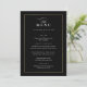 This Classic Elegant Wedding Menu is simple and versatile. It features a chic white and black design with a monogram, script details, simple gold frame and formal editable text. Click the edit button to customize this design.