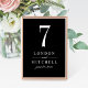 Elégante et élégante carte de numéro de table en mariage noir et blanc présente une belle conception minimaliste de monogramme de typographie. Le texte et le numéro de table personnalisés peuvent être entièrement personnalisés avec les noms de la mariée et du marié et la date du mariage. Notez que chaque carte de numéro de table doit être customisée et ajoutée individuellement au panier (1,2,3...etc.). Veuillez acheter notre collection Classic Elegant Black and White Mariage Collection pour la coordination des conceptions.