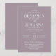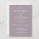 Classic and elegant wedding invitation with a French lilac background and white letters. Text-only design with traditional wording. Digital printable or physical printed paper options. Personalize it with the names of the Mr. and Mrs., venue location, registry, RSVP information, and any details you need to include. Matching suite products available.