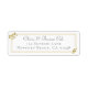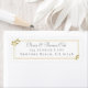 Un modèle d'étiquette d'adresse de retour moderne, sophistiqué, élégant et chic, qui est une prise moderne sur un cadre mariage traditionnel. Parfait pour un mariage aux accents dorés, un mariage noir et blanc ou une suite de papeterie mariage aux motifs de cadres. Il présente un feuillage d'eucalyptus dessiné à la main, numériquement superposé avec de l'or.