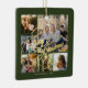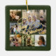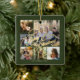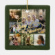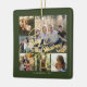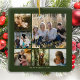 Create your own family photo collage classic elegant keepsake tree ornament with faux gold Merry Christmas calligraphy script on a dark green background.