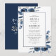 Classic Elegant Navy Blue Watercolor Wedding Invitation