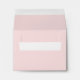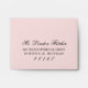 Custom A2 light ballet pink with black wedding RSVP response card envelopes feature an elegant white return address that can be personalized.