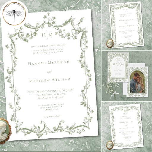 Classic Elegant Sage Green Floral Frame WeddingDesigned by Kathe Santillo