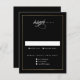 This Classic Elegant Gold Wedding RSVP Card is simple and versatile. It features a chic white and black design with a simple gold frame, script rsvp art and minimal editable text. Click the edit button to customize this design.