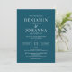 Classic and elegant wedding invitation with a teal background and white letters. Text-only design with traditional wording. Digital printable or physical printed paper options. Personalize it with the names of the Mr. and Mrs., venue location, registry, RSVP information, and any details you need to include. Matching suite products available.