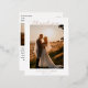 Classic style foil wedding thank you postcard with a simple and minimal design with a combination of traditional serif fonts and an elegant script along with your date in a large format for a modern touch along with your favourite photo. The back has your personalized message and a second photo for a total of two pictures. This elegant thank you postcard is great for a formal wedding.