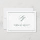 Classic Emerald Green Script Monogram No Meals RSVP Card