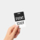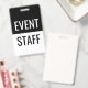 Classic event staff ID badges in simple black and white printed on both sides for corporate events, concerts, or seminars available in large quantities in bulk on a budget or small quantities for smaller events.