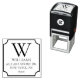 Classic monogram return address self-inking stamp featuring bevelled square border and custom family monogram. A perfect way to address your family's letters and cards. Personalize by adding names and address.