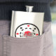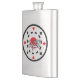 The product is a good size and came exactly as it was pictured.  The lid is not attached to the flask, which could be dangerous on drunken nights... The print came out surprisingly well and looks very sharp.  Would definitely recommend.