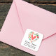 This sticker features floral heart shape wreath with red heart in the middle and typewriter typography with your address.