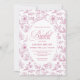 Invite guests to celebrate with this elegant bridal shower invitation featuring classic French toile de Jouy roses. Soft dusty pink, blush, and pink and white floral patterns create a romantic vintage look, beautifully accented with refined rose gold details. Professionally printed by Zazzle, this design delivers crisp text, rich color, and a smooth, premium finish that highlights every rose and floral detail. Perfect for a timeless, floral, or classic bridal shower theme, this invitation is fully customizable and arrives polished, photo-ready, and ready to impress your guests.