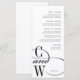 Elegant monogram menus for your wedding or rehearsal dinner feature your initials at the lower left, joined by an ornate swooping "and," on a crisp white background.