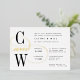 Sleek rehearsal dinner invitations feature your initials in elegant white lettering, joined by an ornate swooping "and" in gold foil. Personalize with your wedding ceremony rehearsal and dinner or celebration details.