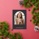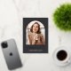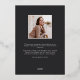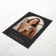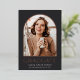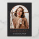 Élégant faire-part de graduation photo dispose d'une photo verticale ou portrait orientée dans une disposition unique voûtée, sur un arrière - plan noir de charbon avec garniture rose en feuille d'or. "Graduate" apparaît ci-dessous, ainsi que le nom de votre diplômé et l'école ou le collège. Ajoutez un message personnel à l'arrière, ainsi qu'une photo supplémentaire.