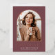 Elegant photo graduation announcement features a vertical or portrait oriented photo in a unique arched layout, on a burgundy plum purple background with rose gold foil trim. "Graduate" appears beneath, along with your graduate's name and school or college. Add a personal message to the back, along with an additional photo.