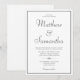 Classic formal and elegant wedding invitation with a traditional design with a border and formal text form with script calligraphy names. All text is editable and printed in a dark grey colour that can work well with the different paper types available for a luxury finish. The back can be left white or customized with text or a photo by clicking the button to edit the design. Matching invite suite products are available.