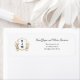 Elevate your wedding stationery with this sophisticated address label designed for couples seeking a timeless aesthetic. The artwork displays a vintage shield crest, ornate botanical filigree, and a printed faux gold foil effect on a crisp background. Easy to customize with your details.