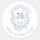 Classic French Blue Floral Crest 70th Birthday Round Sticker