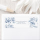 This classic and romantic design is a modern adaptation of an historic French etched ornament of dusty blue intertwined roses, flowers, foliage and ribbons ca 1770 by Rococo designer Pierre Ranson.