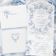 Classic French Blue Flowers & Ribbons Wedding All In One Invitation