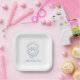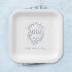 Classic French Victorian blue floral crest birthday paper plate for any age. For more advanced customization of this design, please click the DESIGN TOOL BUTTON above!